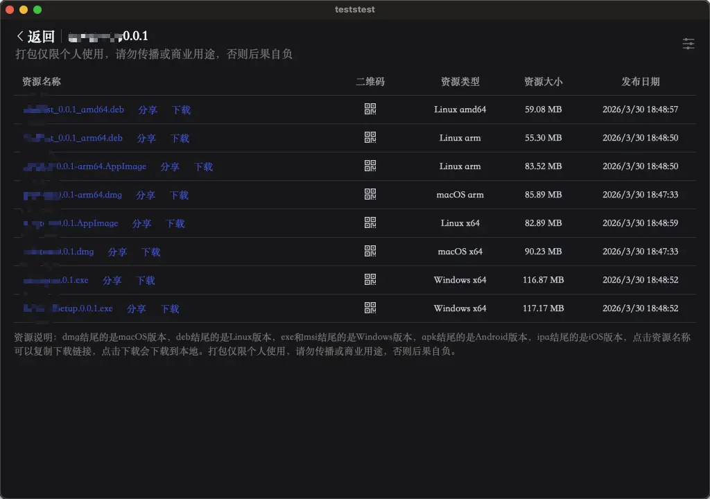 点击发布后,大概 3 分钟左右就可以得到安装包,并下载使用: